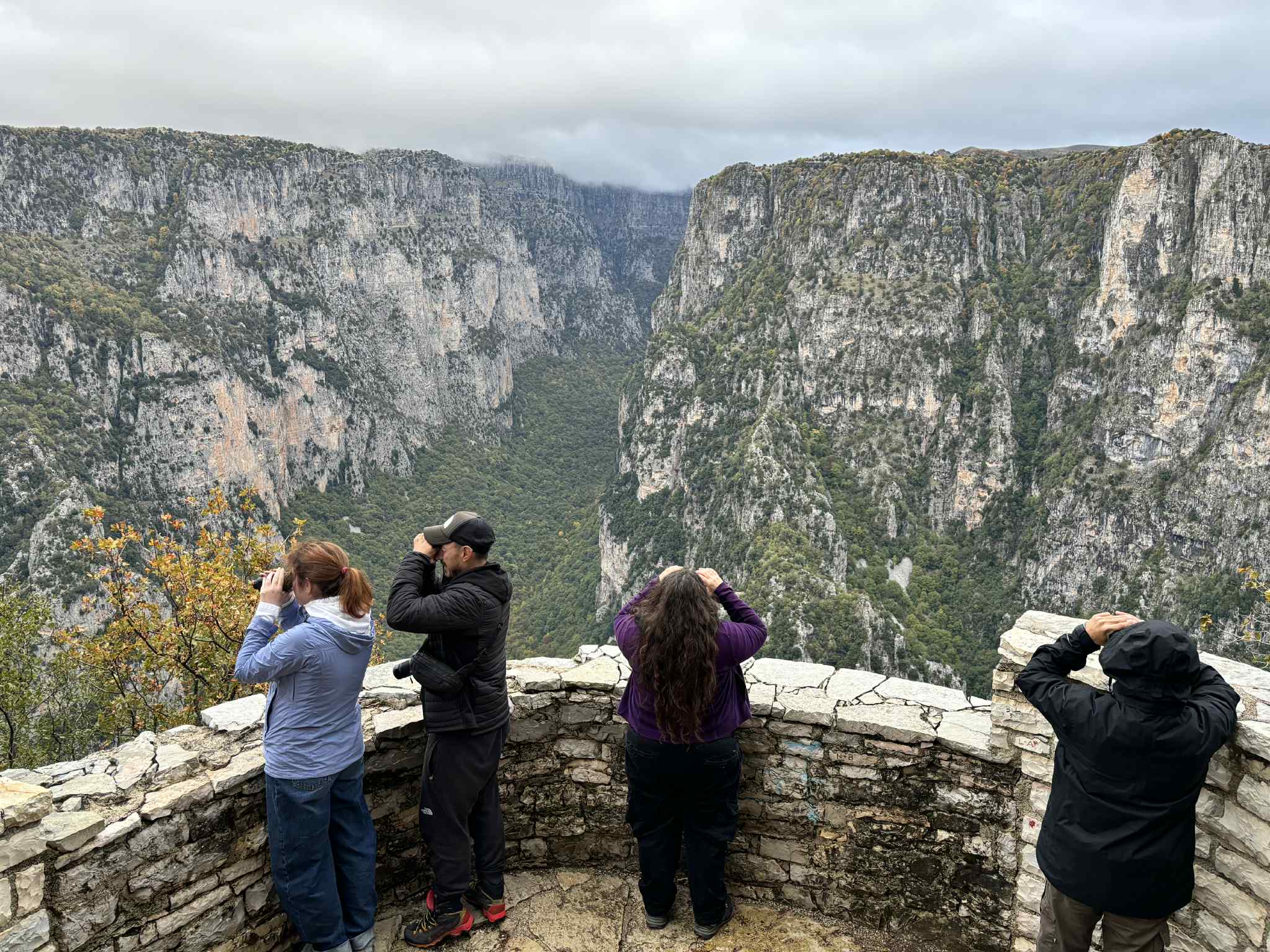 During the following two days (17–18 October 2025), field visits were carried out in chamois habitats in the Tymfi mountain range, including demonstrations of monitoring and recording techniques for the populations of this protected species, as a continuation of the discussions and to enhance understanding of chamois conservation issues. Specifically, the field visits were carried out in the area of Vikos, at Vikaki, in Kousta and Koziakos, and on the northeastern cliffs of Tymfi. Α visit also took place at the Information Centre of the Northern Pindos National Park in Aspraggeloi, Zagori, where the seminar participants had the opportunity to be informed about the rich natural and cultural heritage of the region.